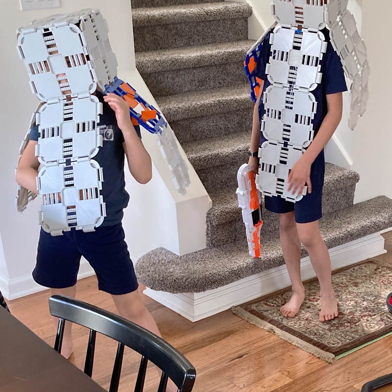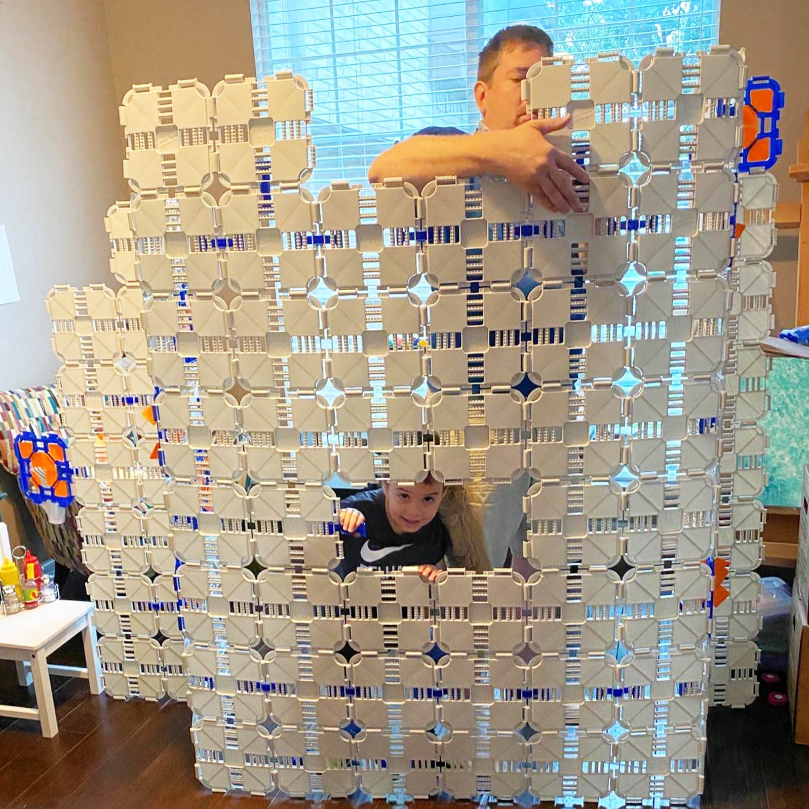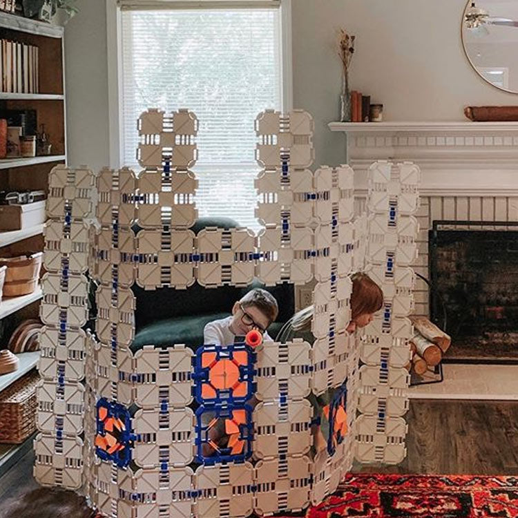 These are AMAZING! I bought two sets of these for a family nerf war over Father’s Day. It rained so we had to do the Nerf War in the house. But we had so much fun building our forts first! They are super easy to put together (my four year old could do it), they come with connectors to make it sturdy and they cooked with targets you can shoot. The possibilities are endless in how you put it together.